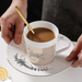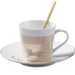 Package included:1xGolden ceramics Cup + 1xStainless steel spoon +1x Ceramic dish with pattern.